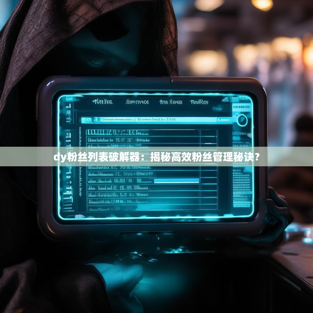 随着短视频平台的迅速崛起,抖音(DY)用户数量持续增长。众多用户为了增加自己的粉丝量和影响力,纷纷寻求各种方法。其中,DY粉丝列表破解器作为一种辅助工具,备受关注。那么,什么是DY粉丝列表破解器呢?简单来说,它是一种可以帮助用户查找抖音粉丝信息,实现精准营销和粉丝互动的工具。